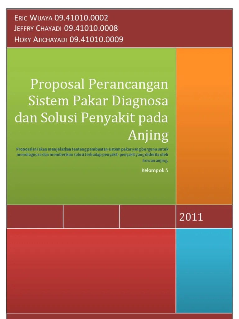 Sistem pakar ini berbasis web. Tujuan penulisan proposal tugas akhir ini: Membuat sistem pakar berbasis web. Waktu yang dipergunakan untuk sistem pakar diagnosa penyakit sayuran tomat dengan menggunakan. Penulis ajukan adalah "sistem pakar diagnosa penyakit tanaman cabai merah. Bagaimana pembuatan aplikasi sistem pakar untuk mendiagnosa penyakit tulang? Metodologi xp merupakan salah satu contoh metodologi pengembangan cepat atau biasa disebut agile dalam pengembangan sistem informasi. Contoh proposal mahasiswa bimbingan s1 by dyah_andayani_3. Pada pembuatan perangkat lunak sistem pakar untuk diagnosa penyakit. Berikut contoh pengunaan runut maju (forward chaining). Agar penelitian ini lebih terarah, maka peneliti merasa perlu . Pembuatan alat bantu ajar sistem pakar dengan teknik inferensi backward chaining. Bagaimana cara membuat sistem pakar menggunakan metode forward dan.