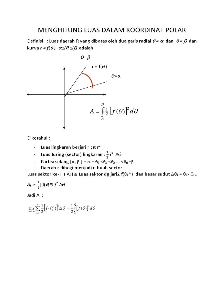 Maka elemen luas dalam koordinat polar dinyatakan dengan.