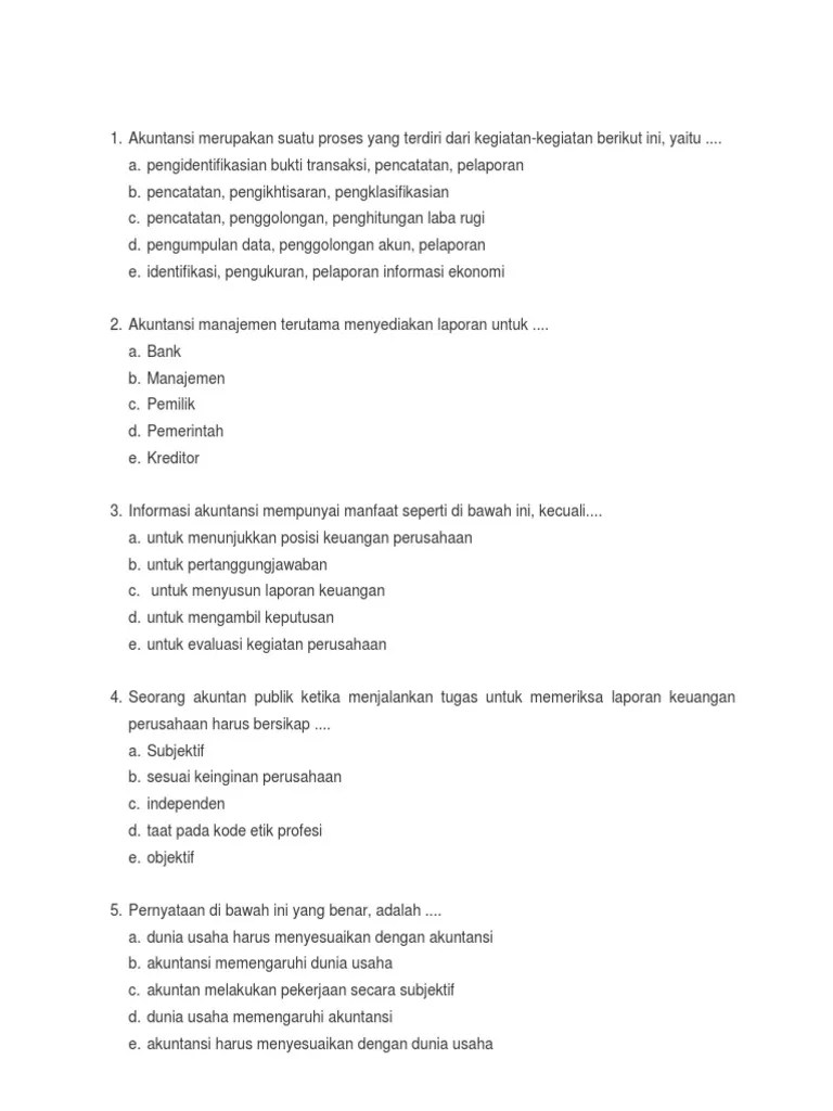 Contoh Soal Pilihan Ganda Akuntansi Sebagai Sistem Informasi Dan Jawabannya / Soal Pilihan Ganda Laporan Keuangan Perusahaan Dagang - Hal ini merupakan sifat akuntansi sebagai….